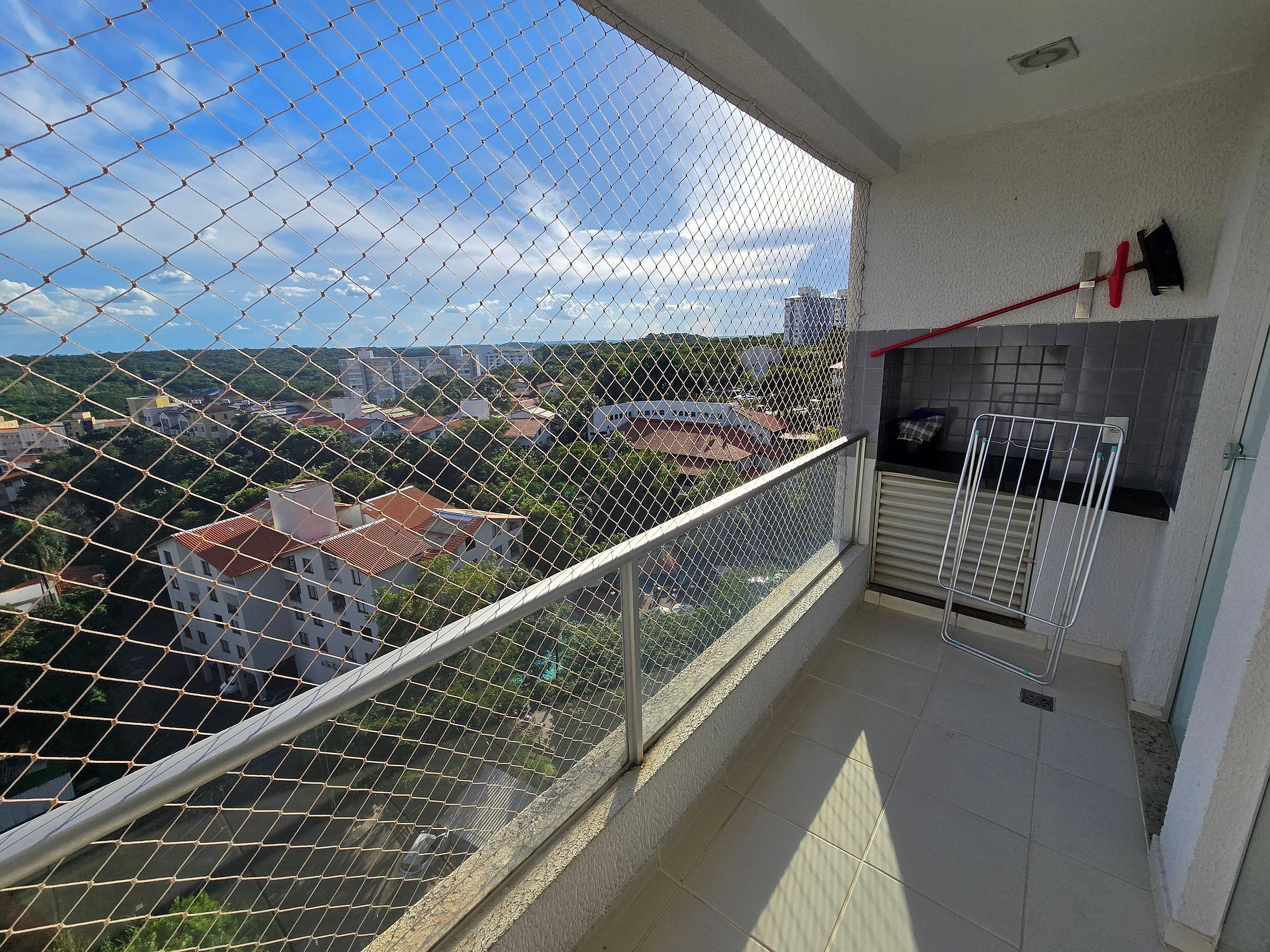 -Janela e sacada do apartamento com proteção de tela em perfeitas condições.