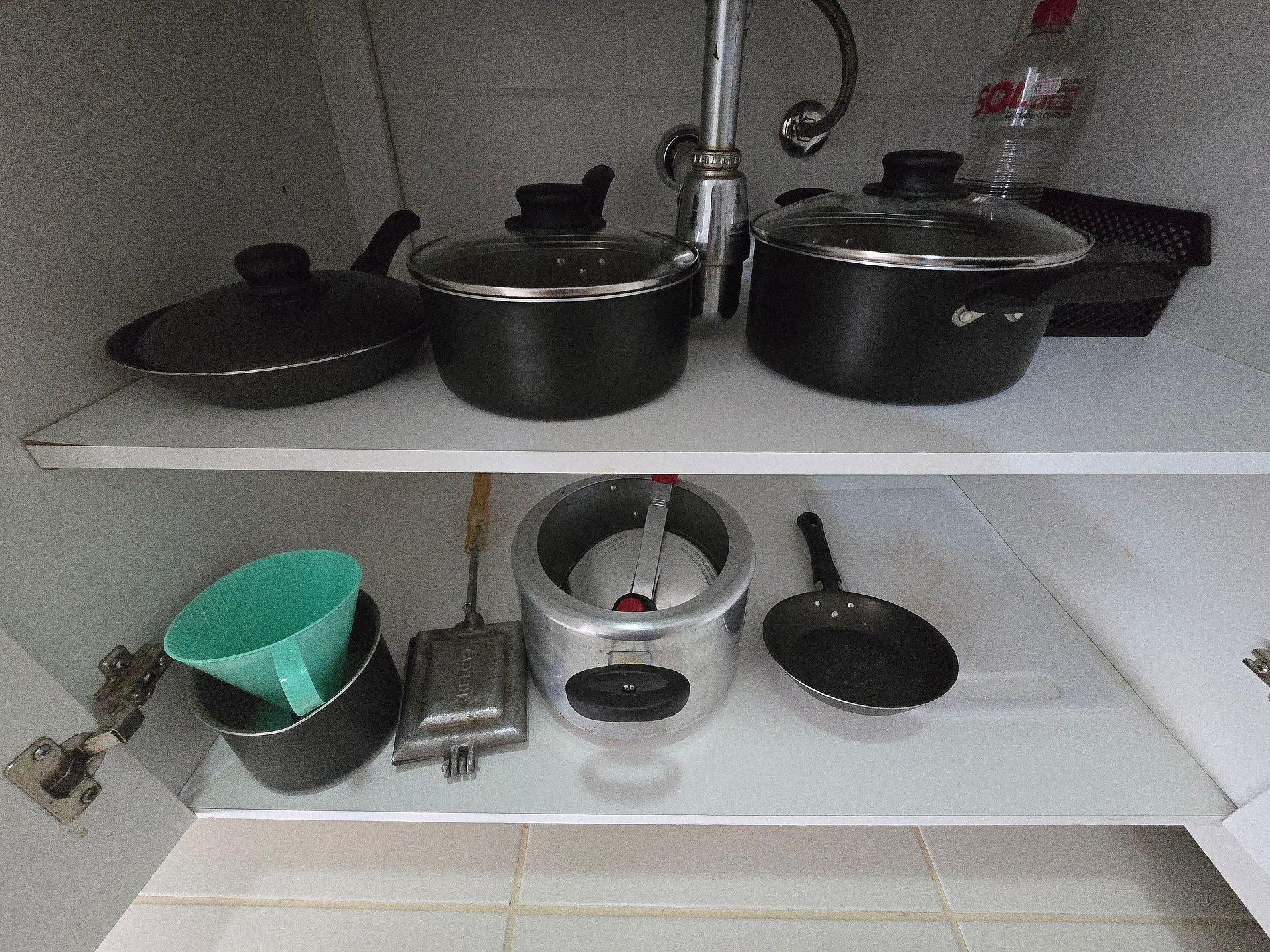-Louças, panelas, copos e utensílios básicos de cozinha