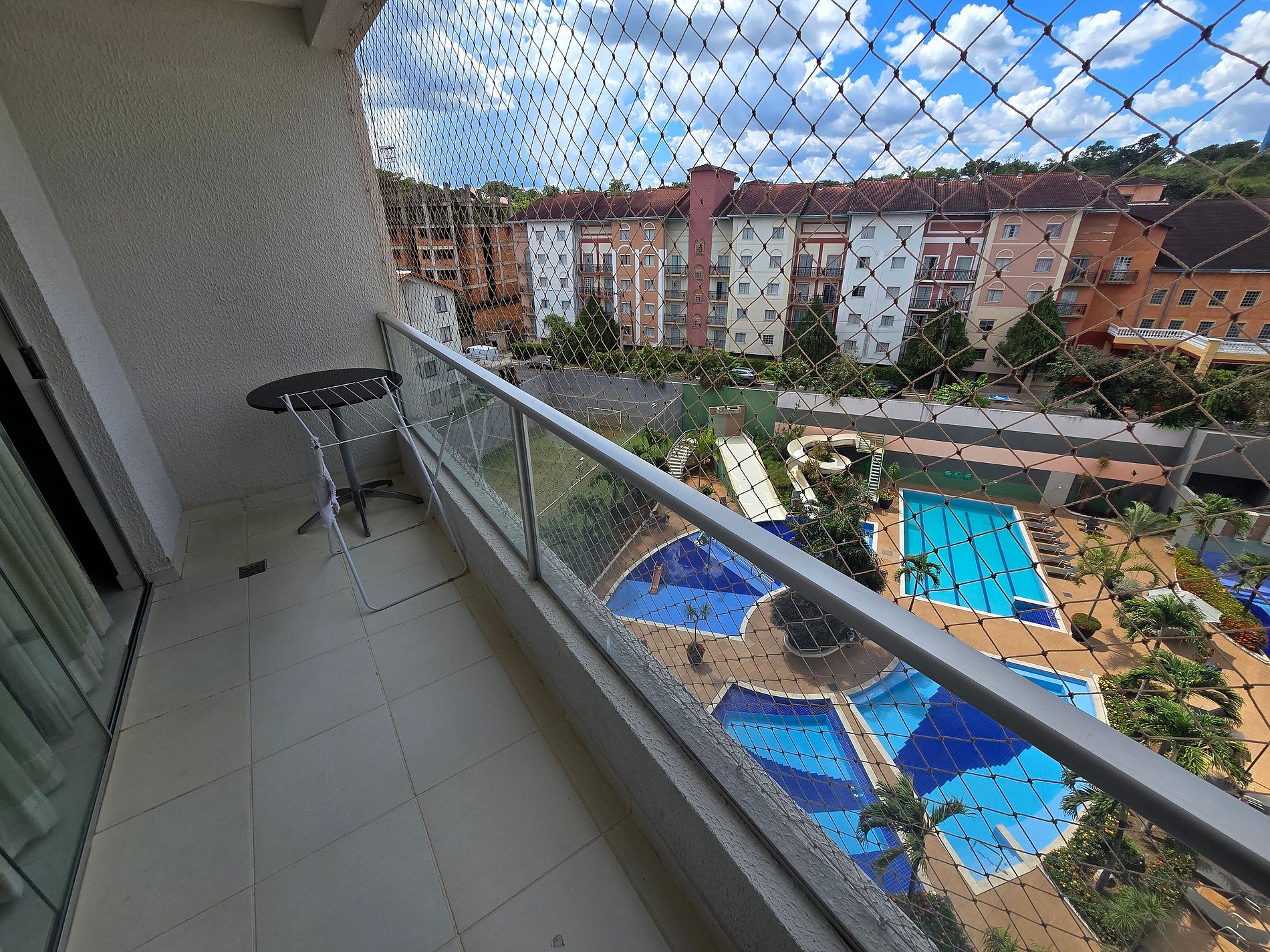 -Janela e sacada do apartamento com proteção de tela em perfeitas condições.