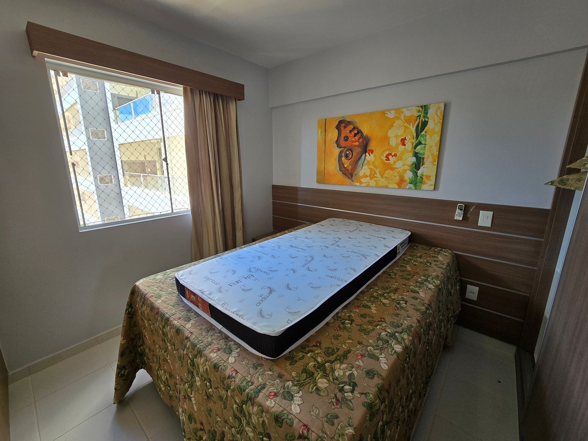 Suíte 2: Cama casal, colchão solteiro, guarda roupas, ar condicionado, TV, travesseiros, mesa e 2 cadeiras