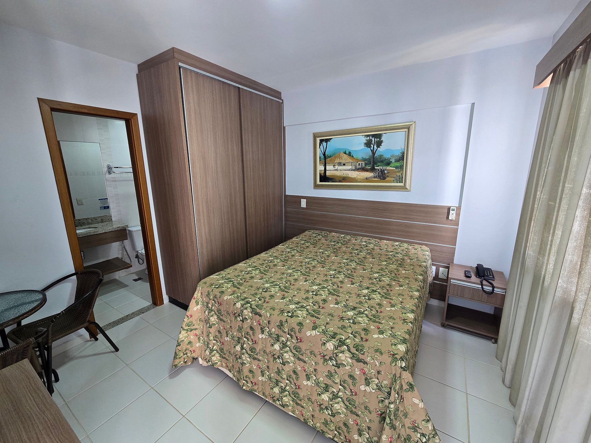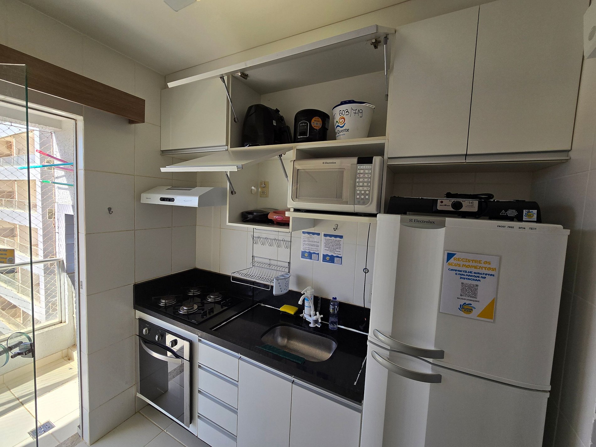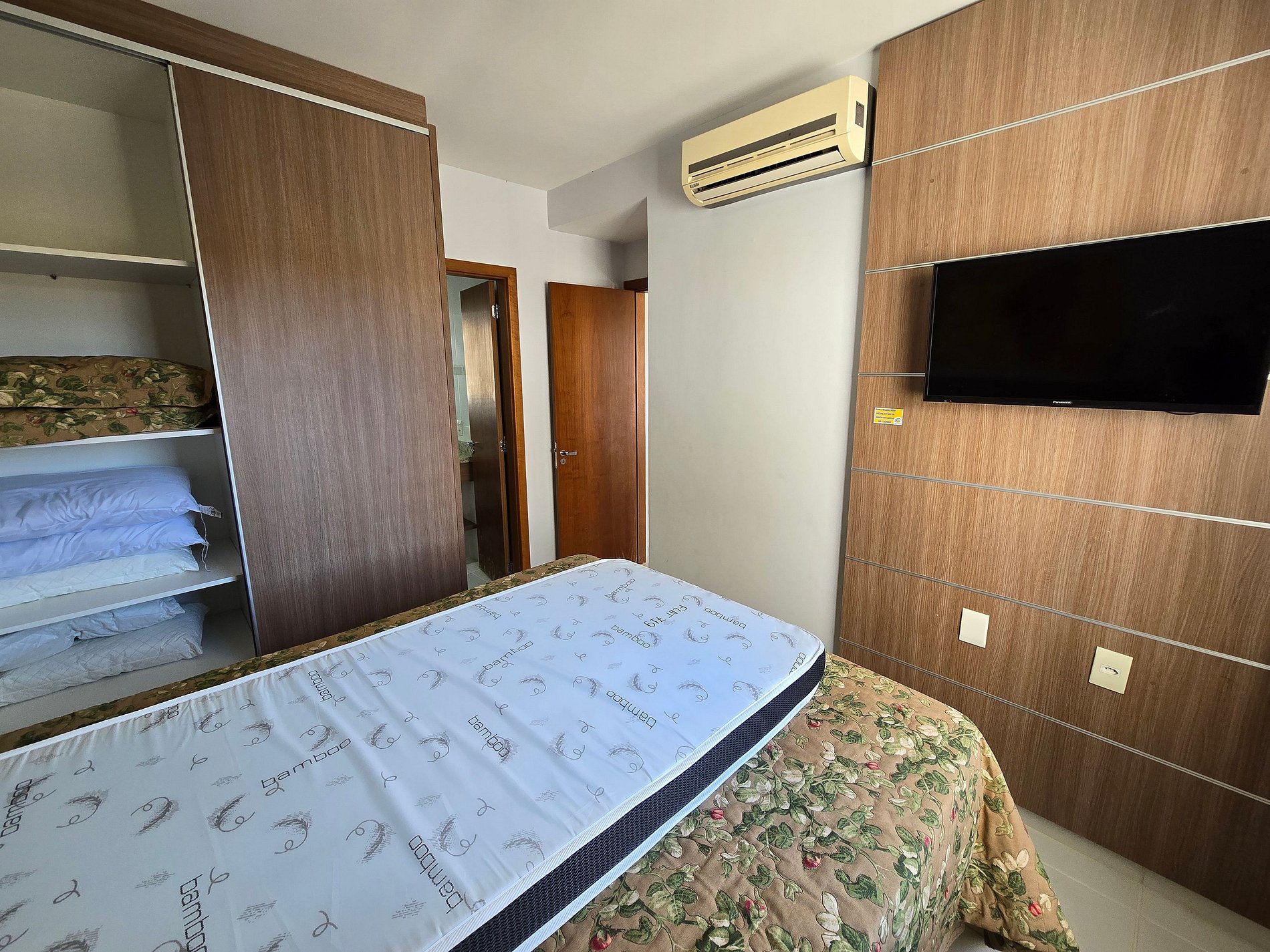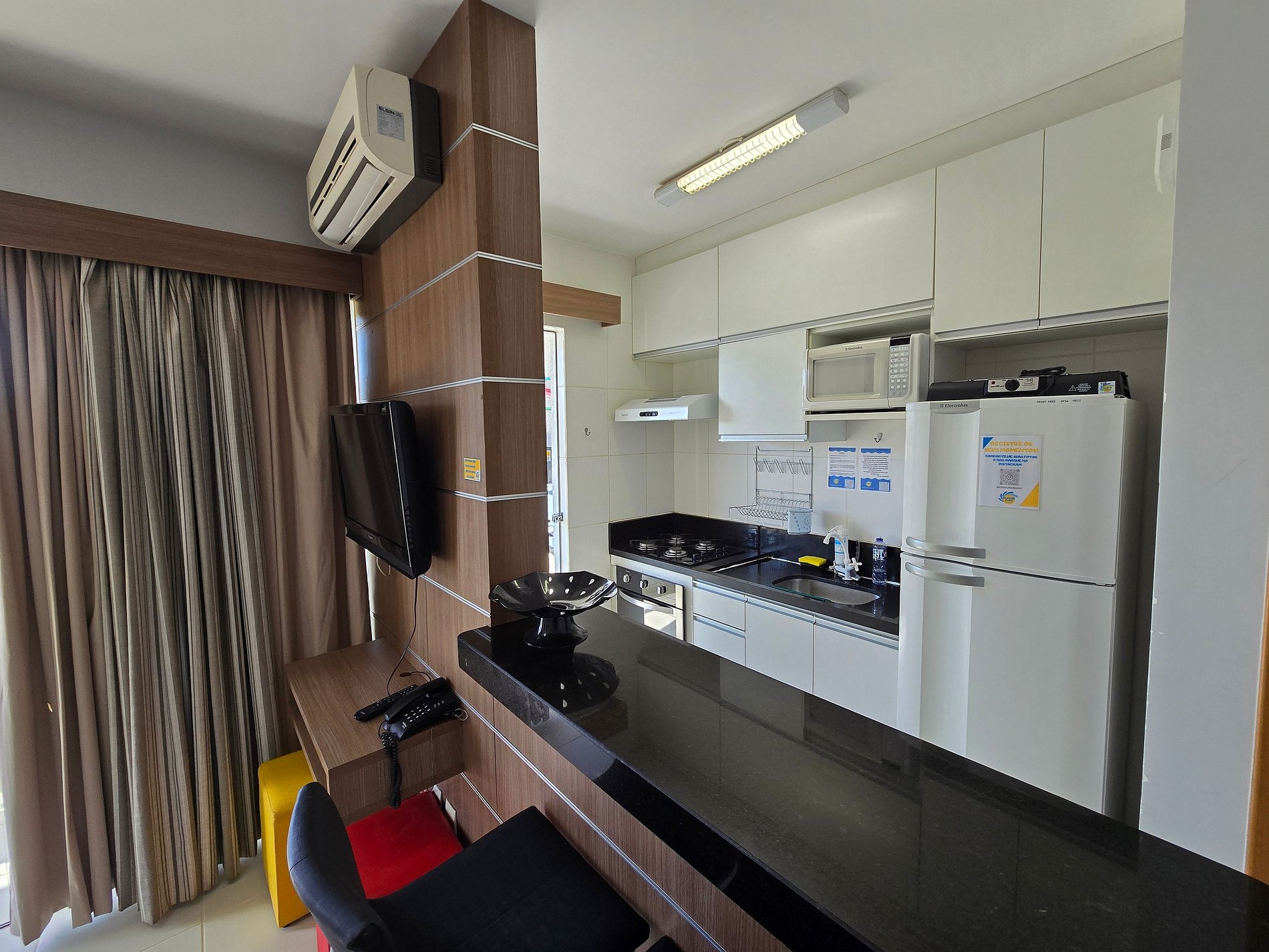 Um apto c/ 3 suítes, todas c/ ar cond, cozinha muito bem equipada, sala com ar cond, banheiro social, sacada e vista p/ piscinas. O apto fica no Veredas Flat Service, que conta com piscinas aquecidas e frias, piscina coberta, sauna, 2 jacuzzis, academia, espaço infantil, salão de jogos, restaurante, estacionamento e muito mais. Ótima localização, a 400m do Hot Park, próximo de restaurantes e lojas. Não cobramos taxa de estacionam, nem pulseira e nem p/ acessar área de lazer do condomínio