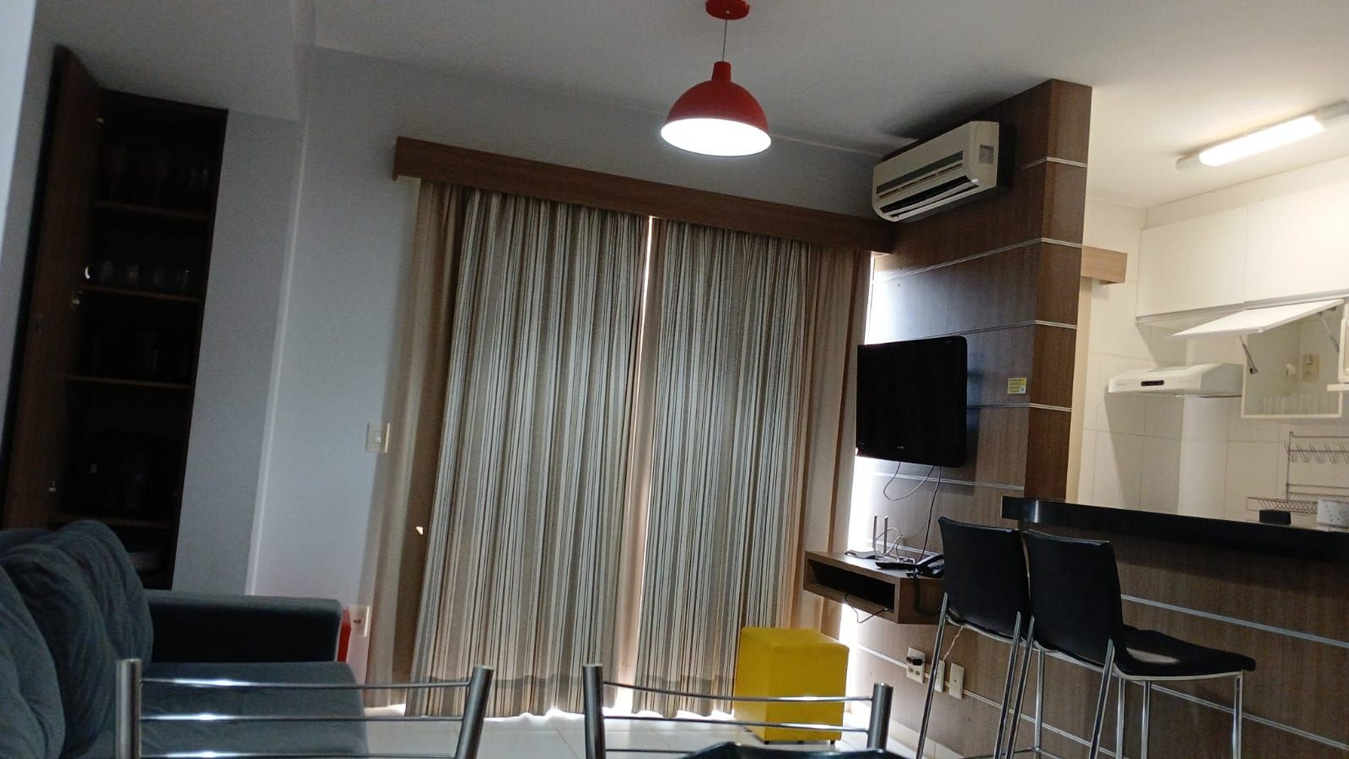 -Sala de estar com ar condicionado, TV, sofá cama pra 1 criança (precisa abrir), mesa com 4 cadeiras e total de 4 bancos