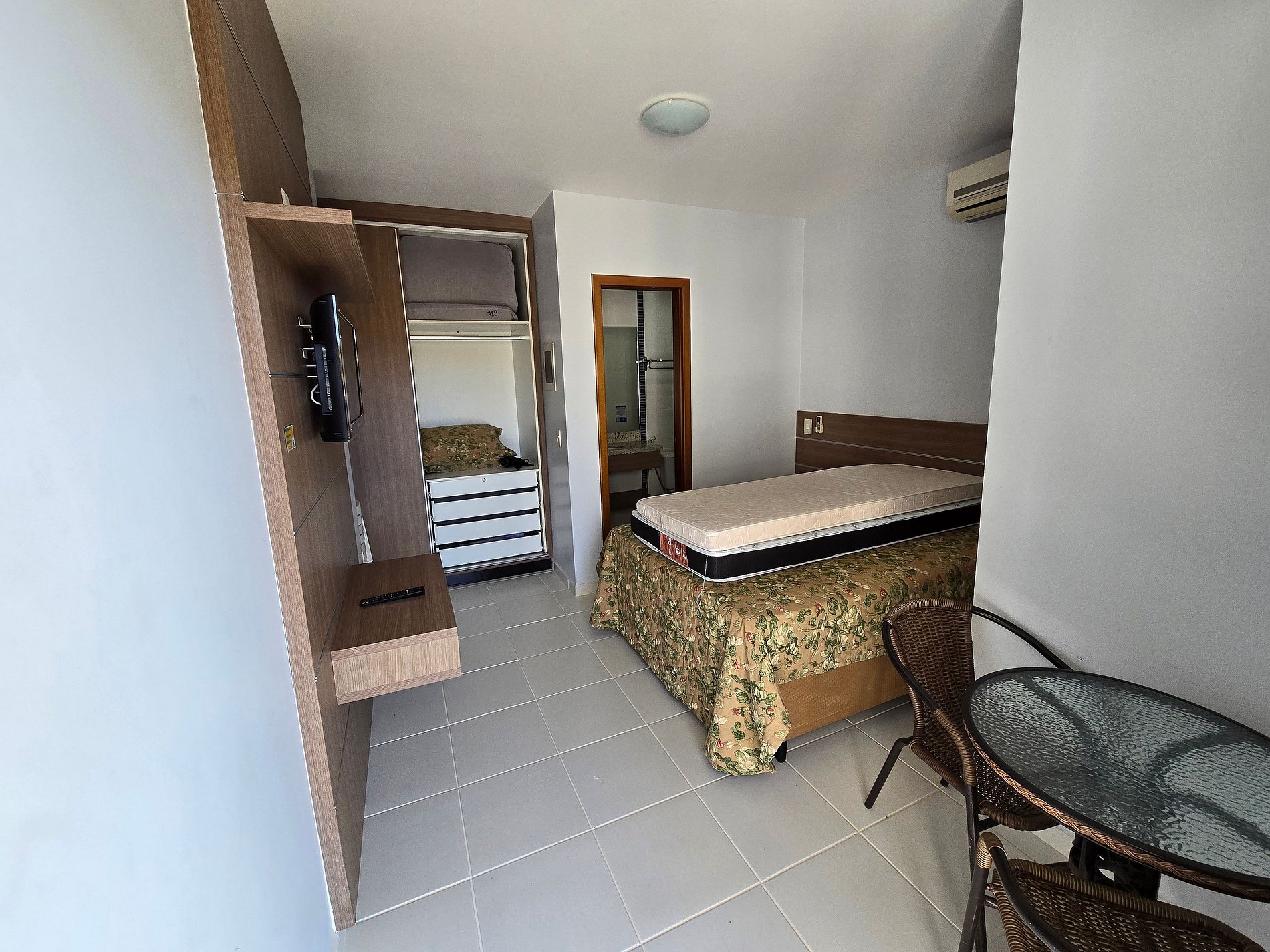 Um apto c/ 3 suítes, todas c/ ar cond, cozinha muito bem equipada, sala com ar cond, banheiro social, sacada e vista p/ piscinas. O apto fica no Veredas Flat Service, que conta com piscinas aquecidas e frias, piscina coberta, sauna, 2 jacuzzis, academia, espaço infantil, salão de jogos, restaurante, estacionamento e muito mais. Ótima localização, a 400m do Hot Park, próximo de restaurantes e lojas. Não cobramos taxa de estacionam, nem pulseira e nem p/ acessar área de lazer do condomínio