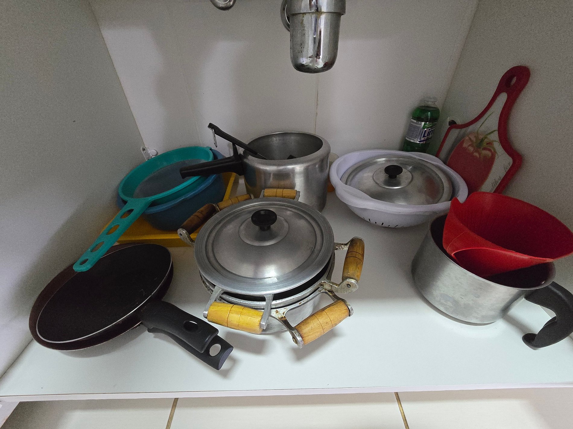 -Louças, panelas, copos e utensílios básicos de cozinha