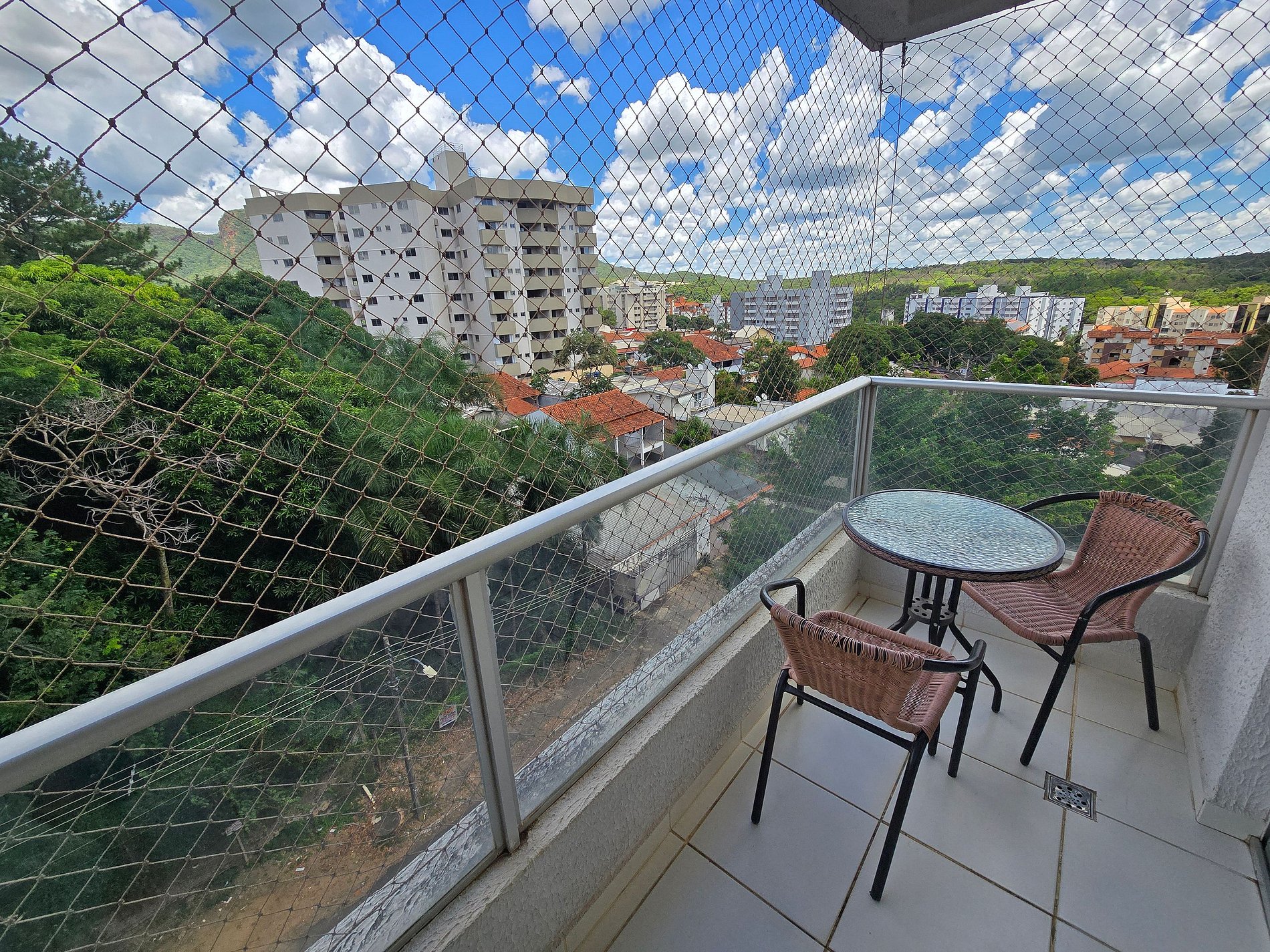 -Janela e sacada do apartamento com proteção de tela em perfeitas condições.
