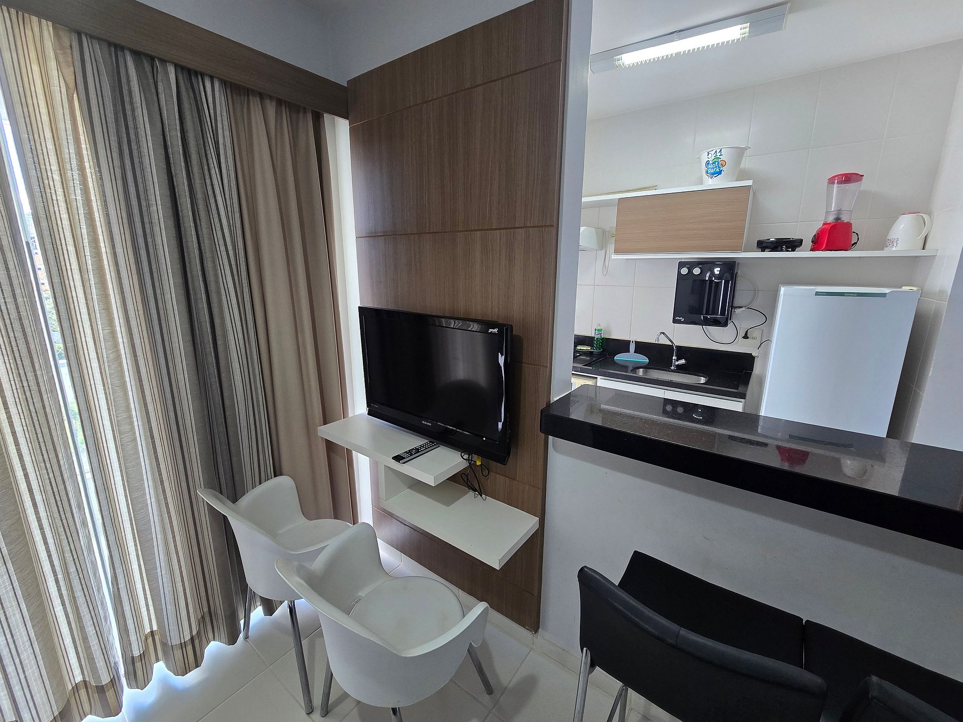 A limpeza do flat pode ser feita diretamente pelas camareiras, sem custo adicional, basta solicitar na recepção do hotel.