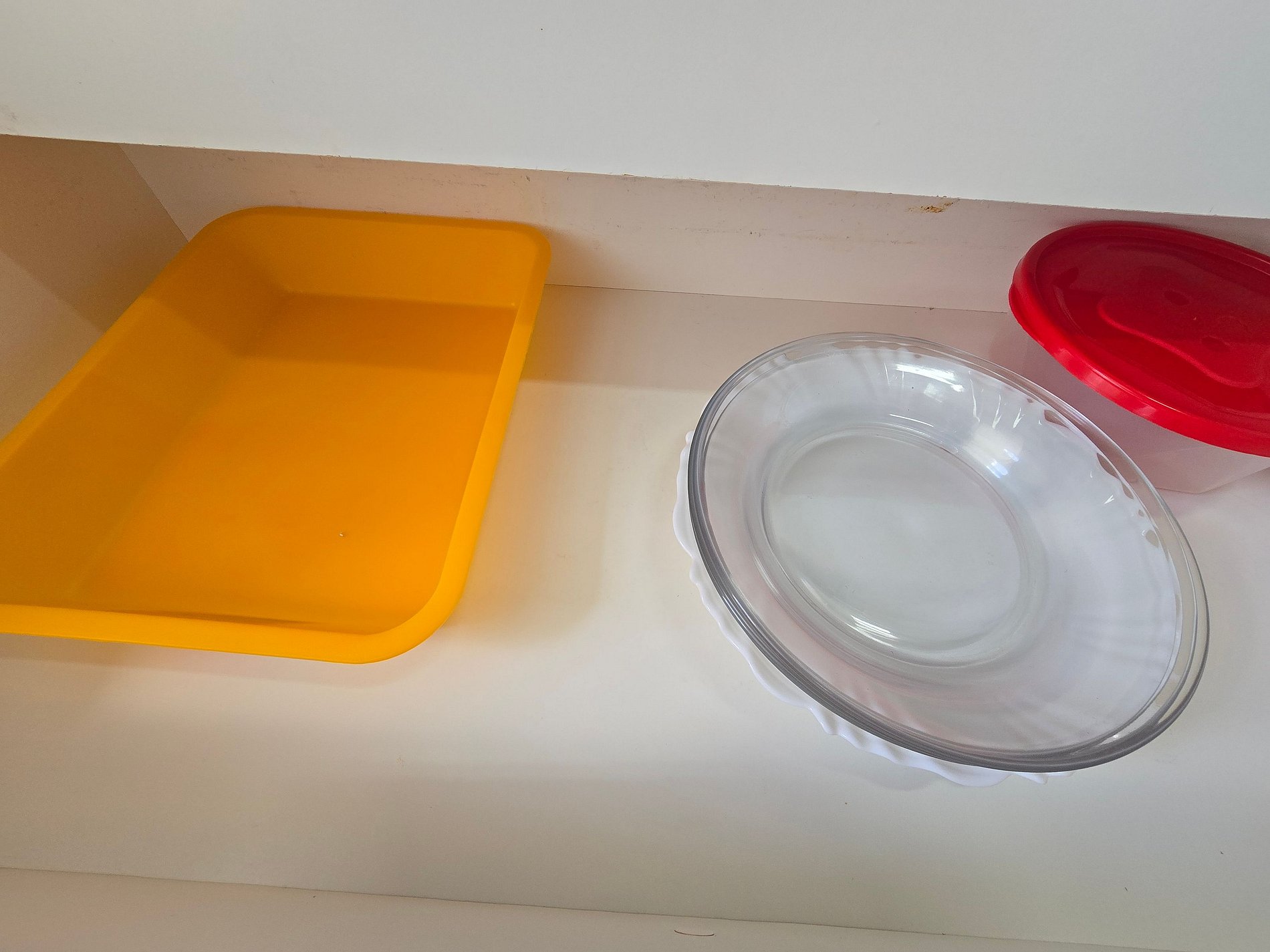 Comidas também podem levar em pratos e vasilhas de plástico , que também temos algumas na cozinha.