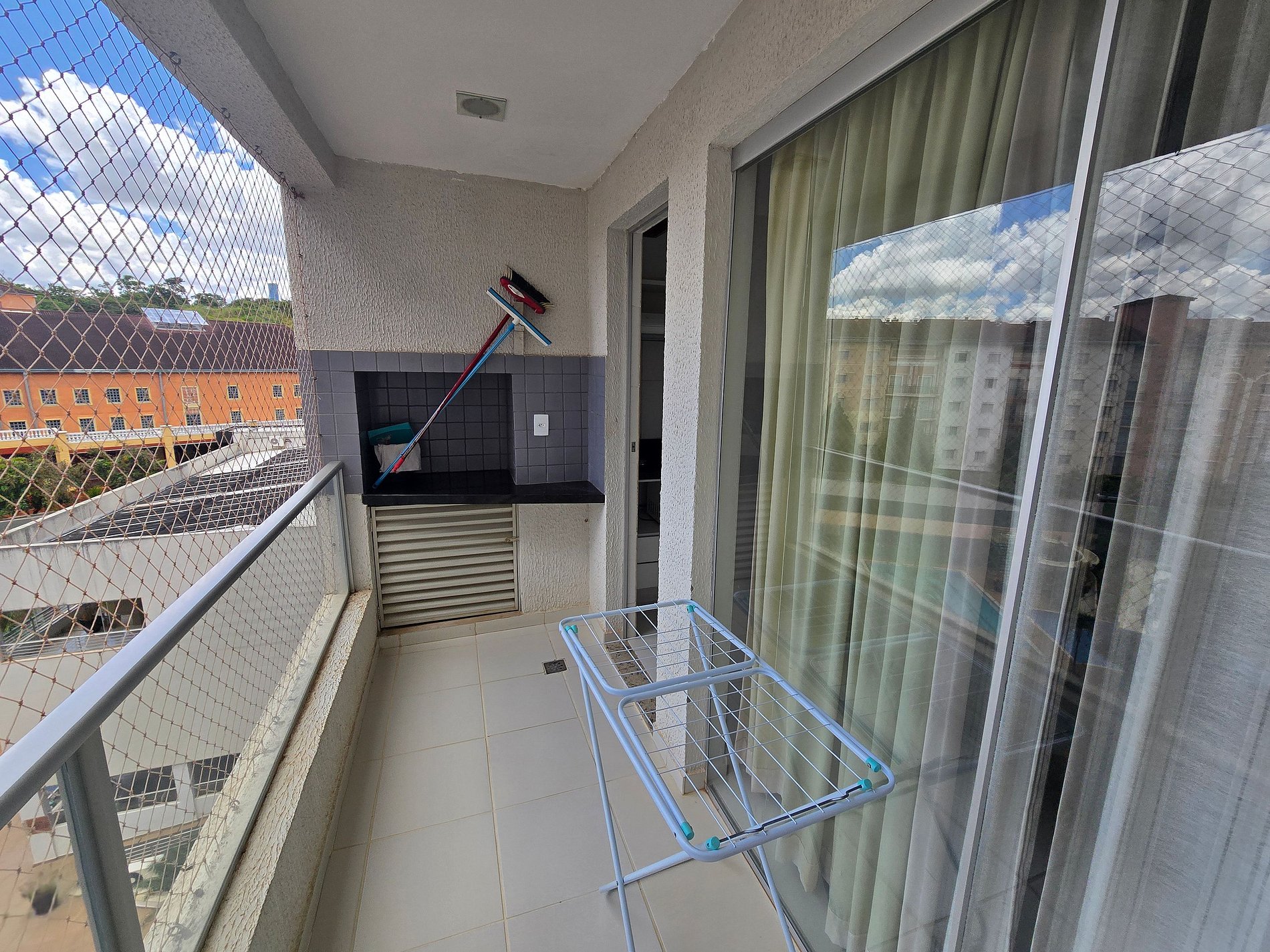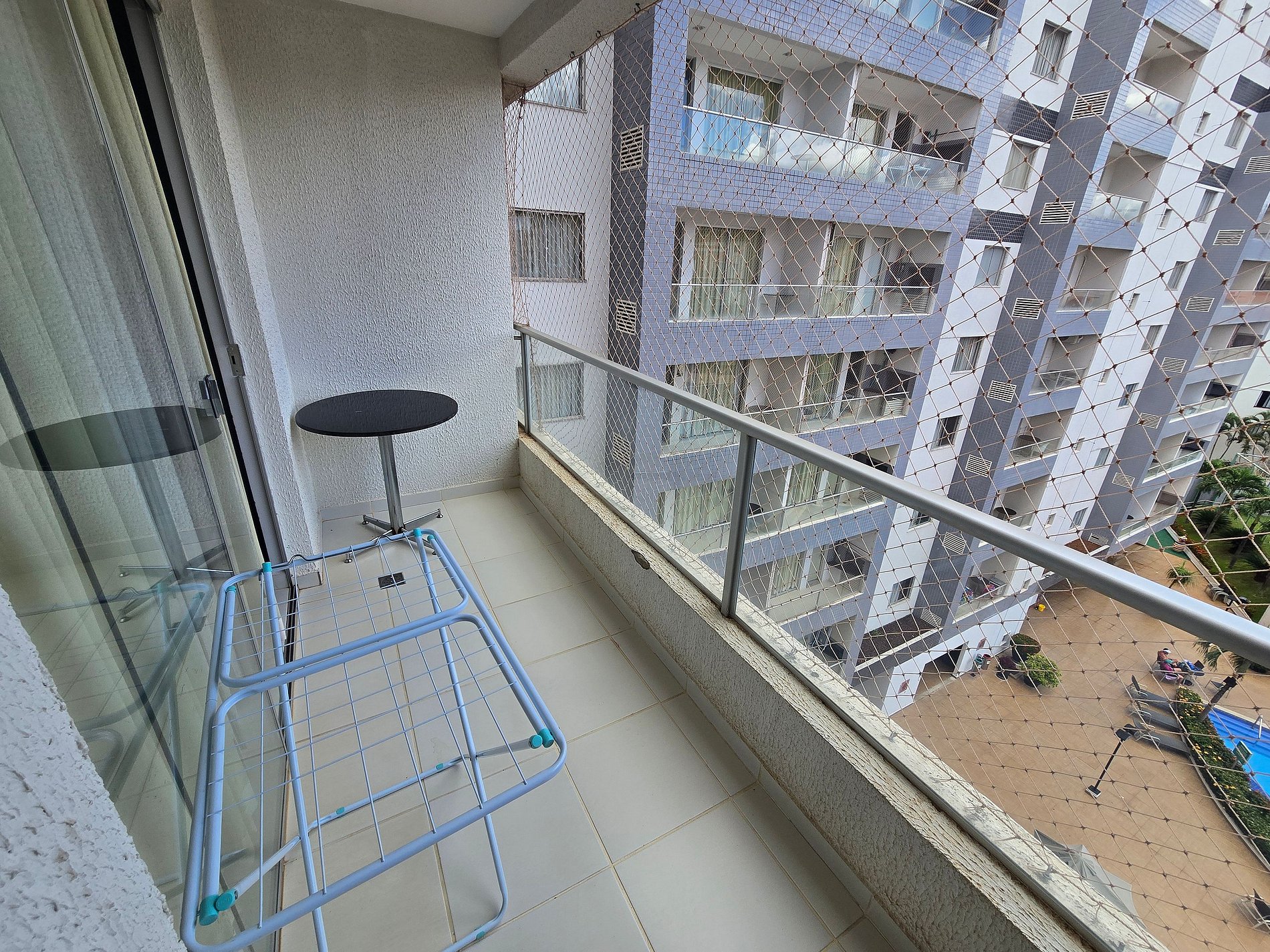 -Janela e sacada do apartamento com proteção de tela em perfeitas condições.