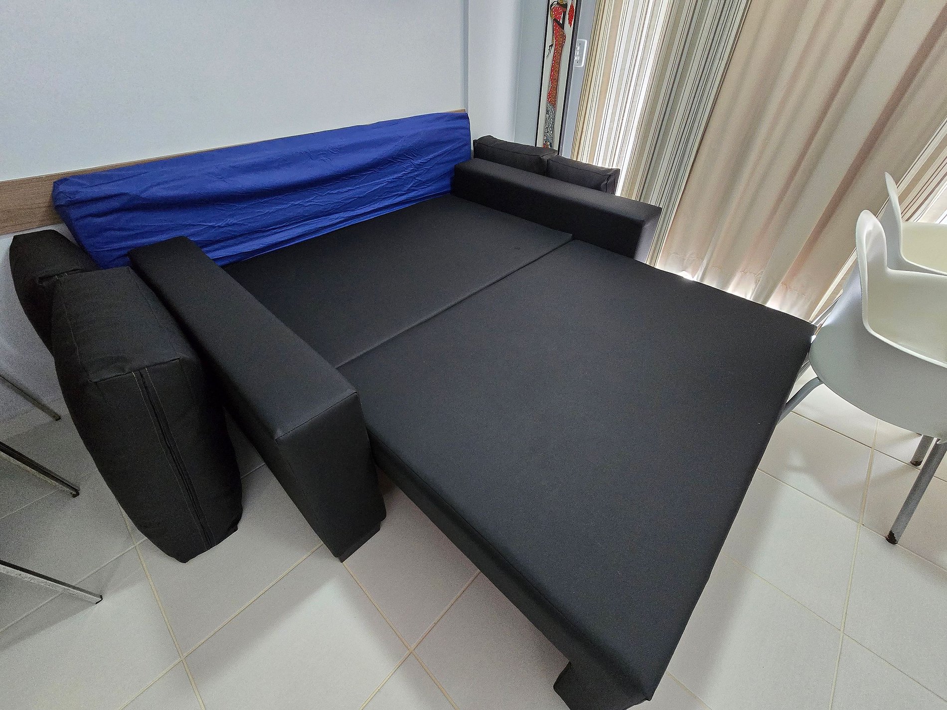-Sofá cama na sala para 2 pessoas, precisa abrir pra virar cama