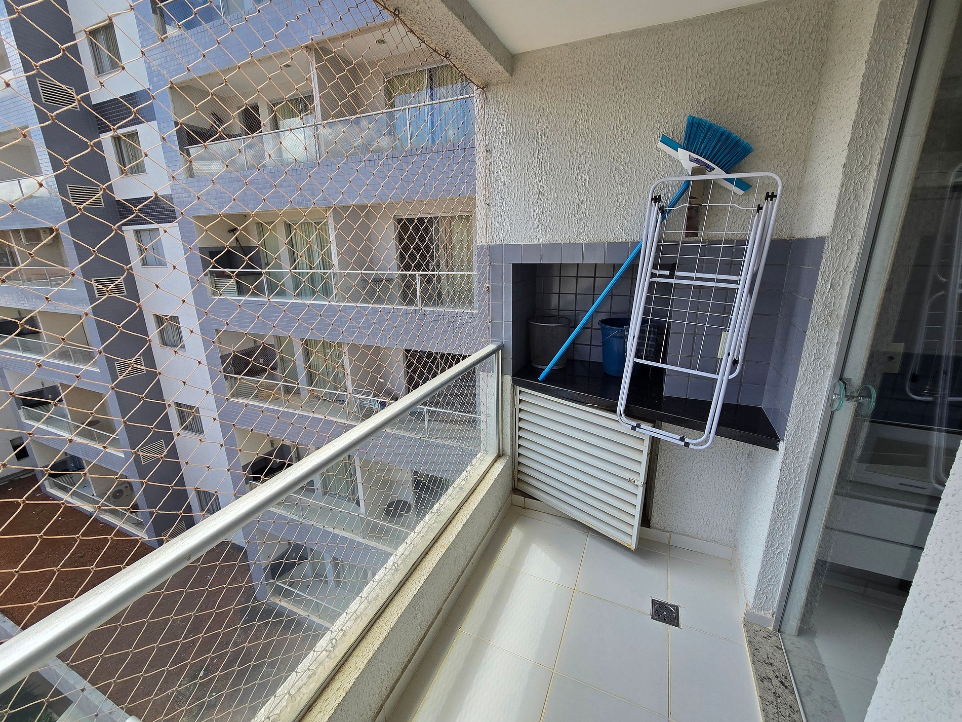 -Janela e sacada do apartamento com proteção de tela em perfeitas condições.