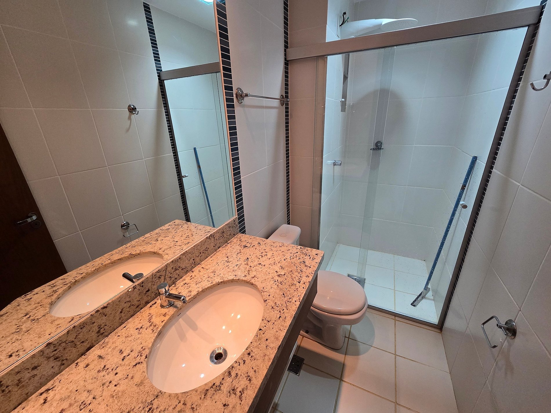 O apartamento possui 4 banheiros no total (incluindo os das suítes) e 2 secadores de cabelo.