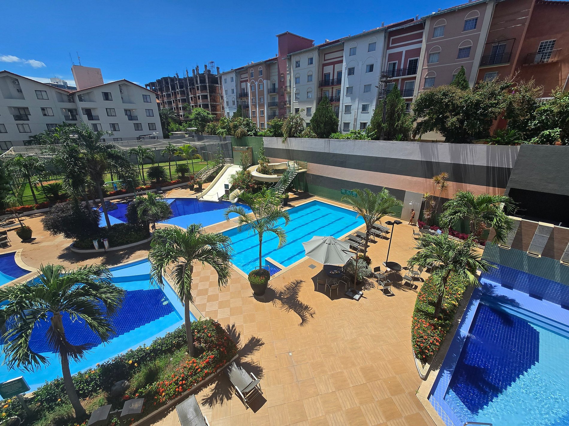 Apartamento composto por dois flats interligados, ideal para famílias. São 2 suítes com ar-condicionado, 2 cozinhas muito bem equipadas, 2 banheiros sociais (total de 4 banheiros), sacada ampla e 2 vagas no estacionamento cobertas e gratuitas. Localizado no Veredas Flat, com piscinas frias e aquecidas, piscina coberta, sauna, 2 jacuzzis, academia, espaço infantil, salão de jogos e restaurante. Fica a apenas 400m do Hot Park.