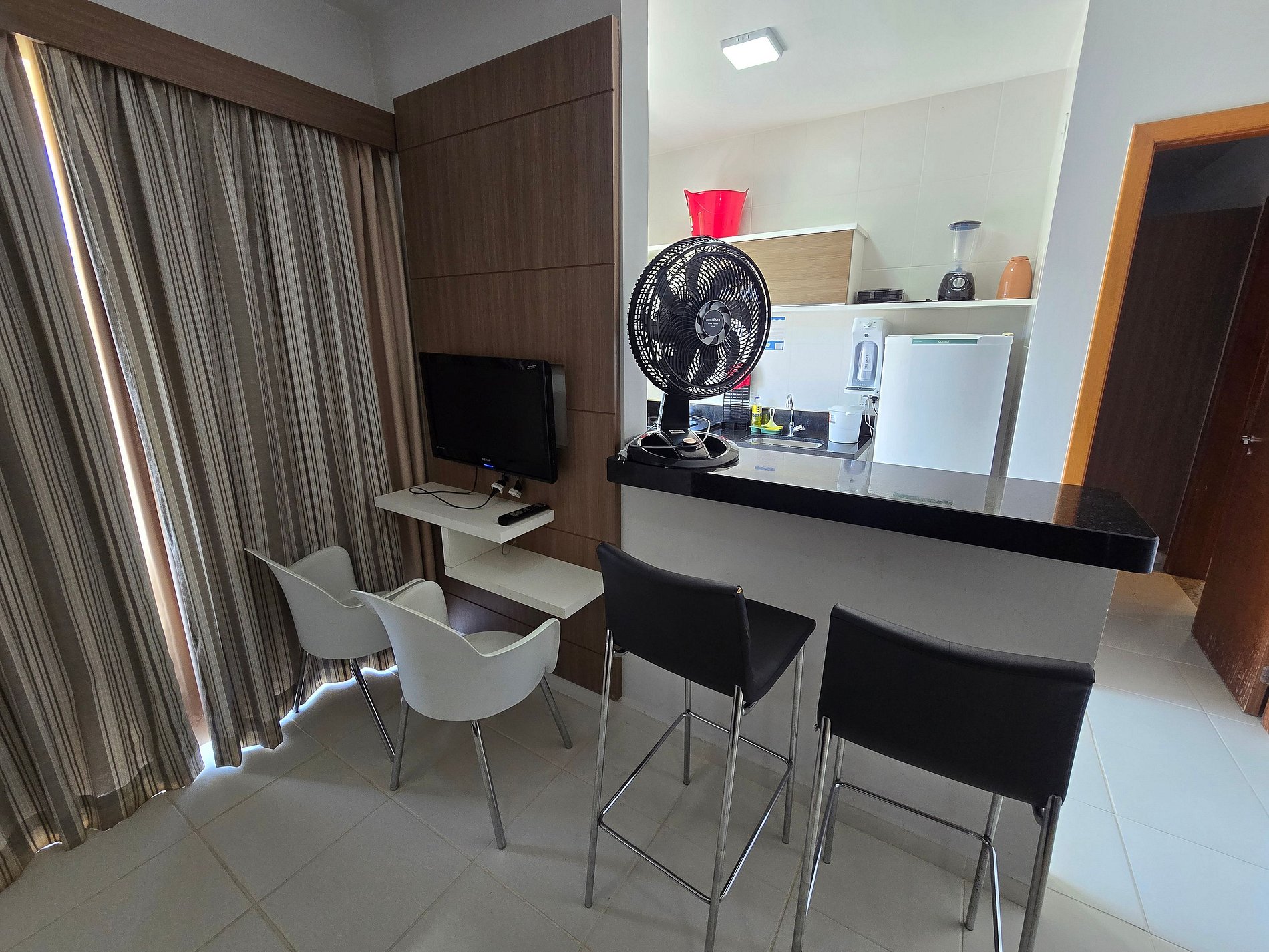 Importante: não fornecemos roupa de cama. O hóspede pode trazer a sua ou, se preferir, alugar com um fornecedor que indicamos, que deixa tudo preparado no apartamento antes do check-in.